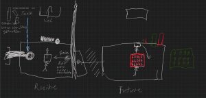 Wir haben uns Entschieden den Unfall des Professors zu verfilmen. Dieser führte dazu, dass er in zwei Welten gleichzeitig existiert.