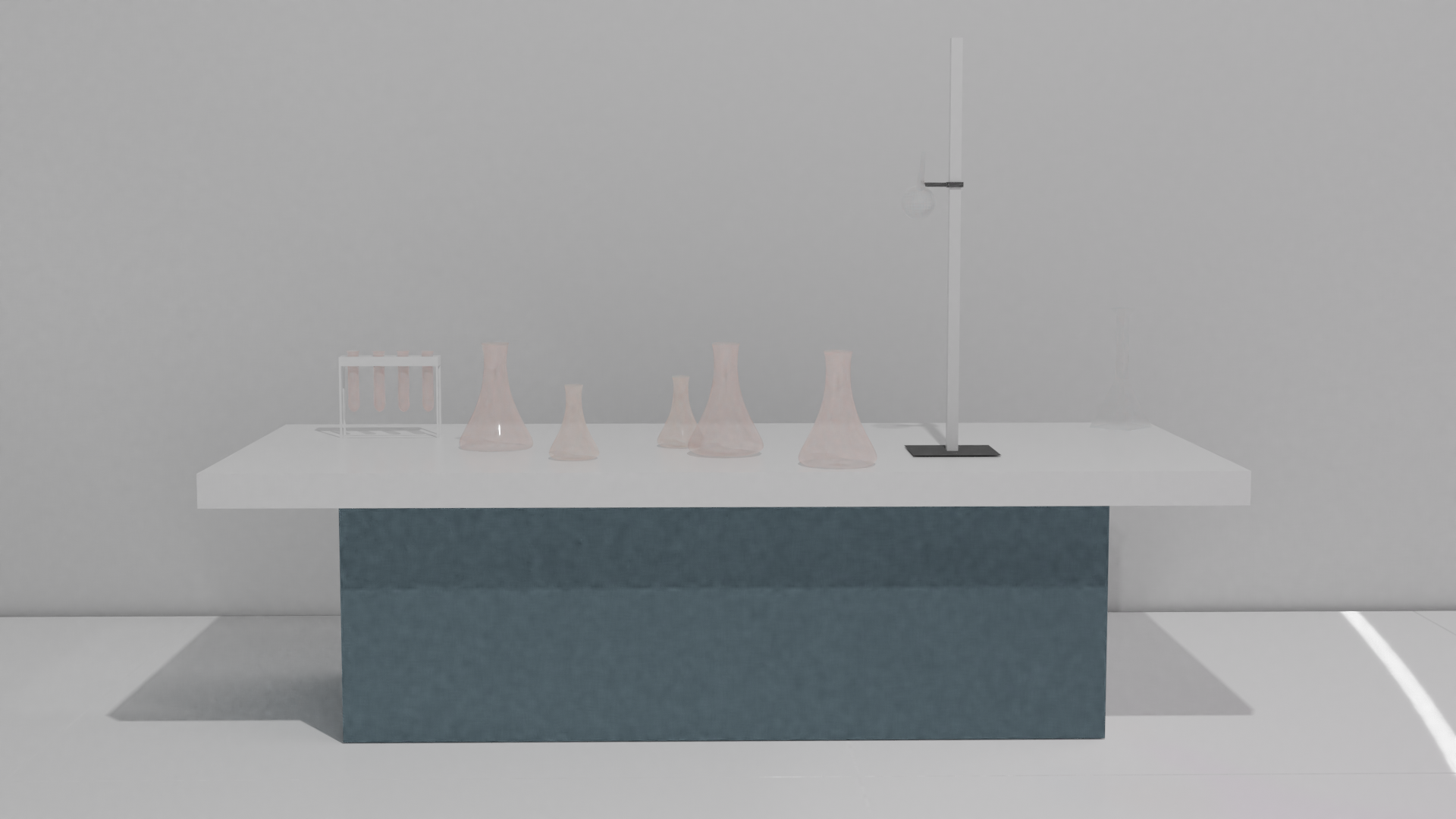 Die Kamera fährt um die Reagenzgläser, die auf den Laborarbeitstisch stehen, um zu zeigne, das sich der Chrackter in einem Labr aufhällt. Hauptmusik wird abgespielt und läuft im Hintergrund.