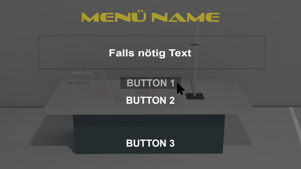 Bei Aktivieren dieses Menü Typs wird der Hintergrund ausgegraut und ein Menü mit Text und Buttons öffnet