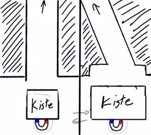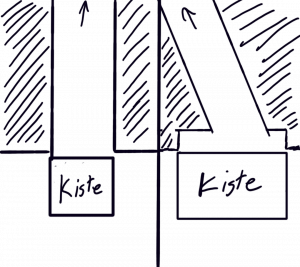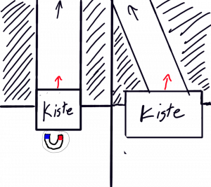 Problematik: Die Kisten können nur nach vorne geschoben werden. Dadurch bleibt aber der Ausgang versperrt.