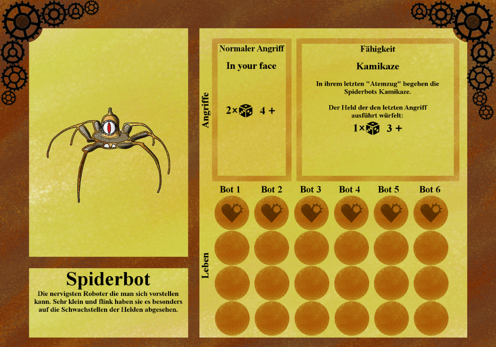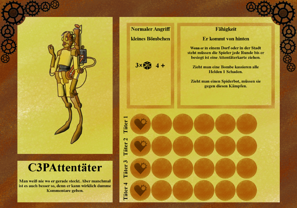 Ein Meister der Tarnung und der Sabotage, wären andere Maschinenwesen den Helden vor allem durch körperliche Angriffe zusetzen, kann dieser Roboter den Druck erhöhen, indem er Dörfer auf der Karte bedroht und die Helden damit zwingt auf ihn zu reagieren.